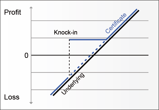 A Bonus Certificate turns into a Tracker Certificate after breaching the Barrier |