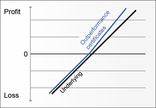 Disproportional participation (Outperformance) in a positive performance of the underlying |